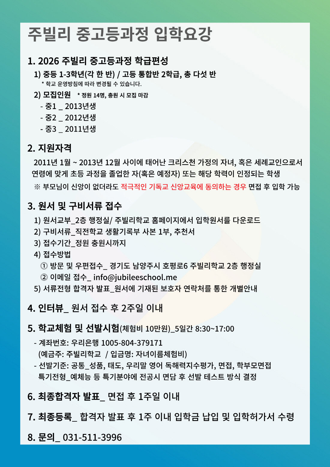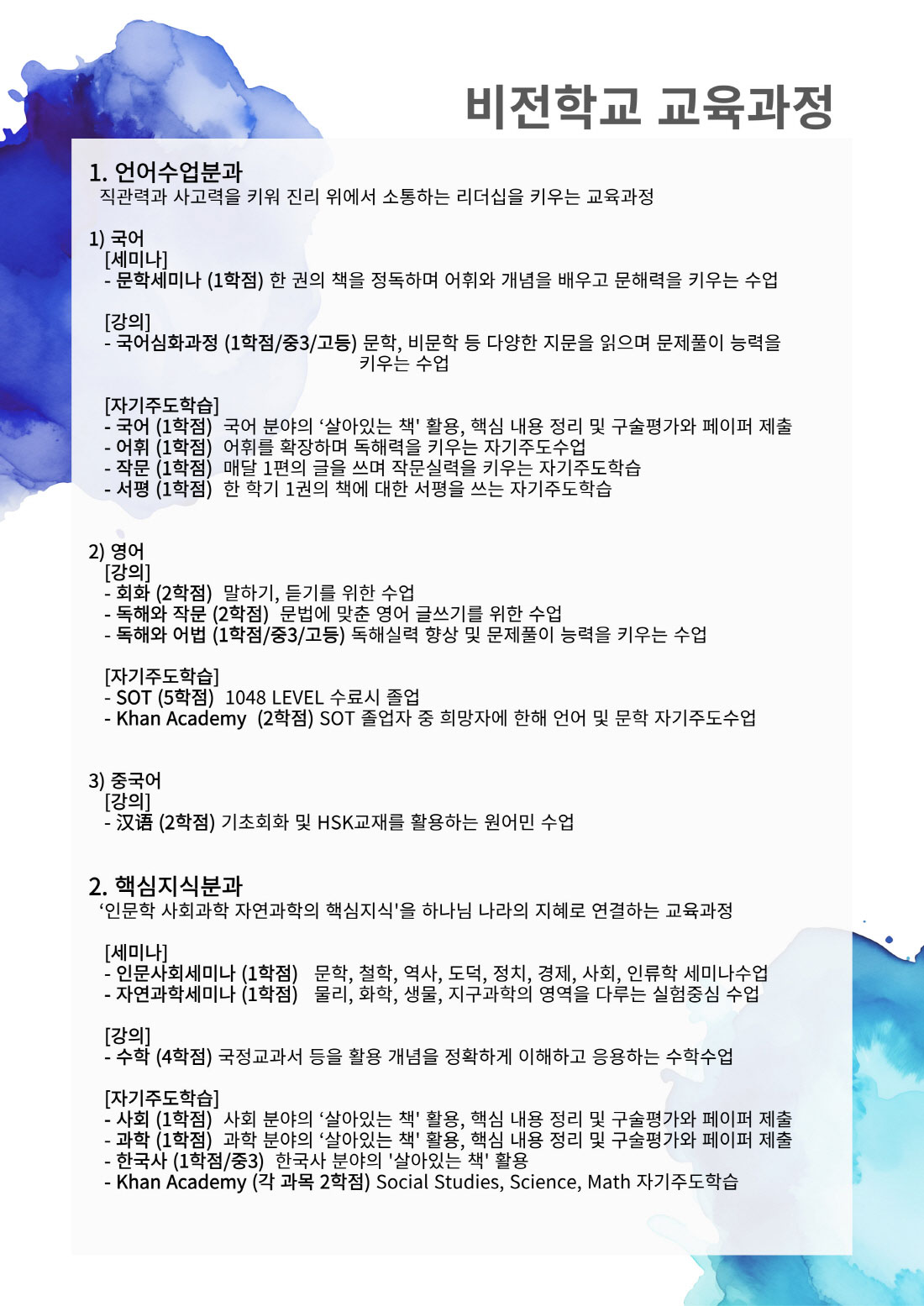 주빌리 중고등교육 과정안내