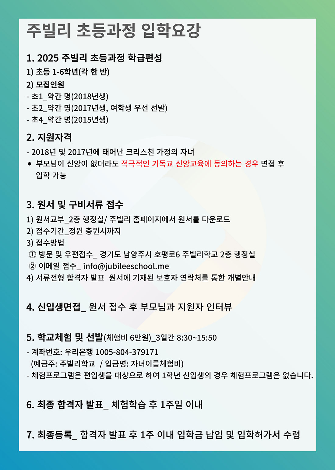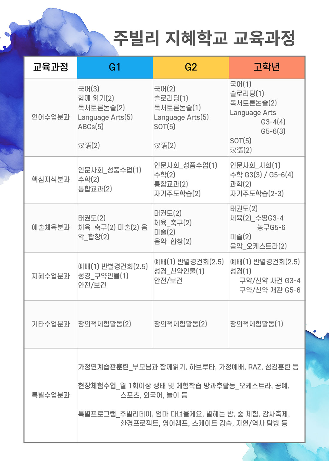주빌리 초등교육 과정안내